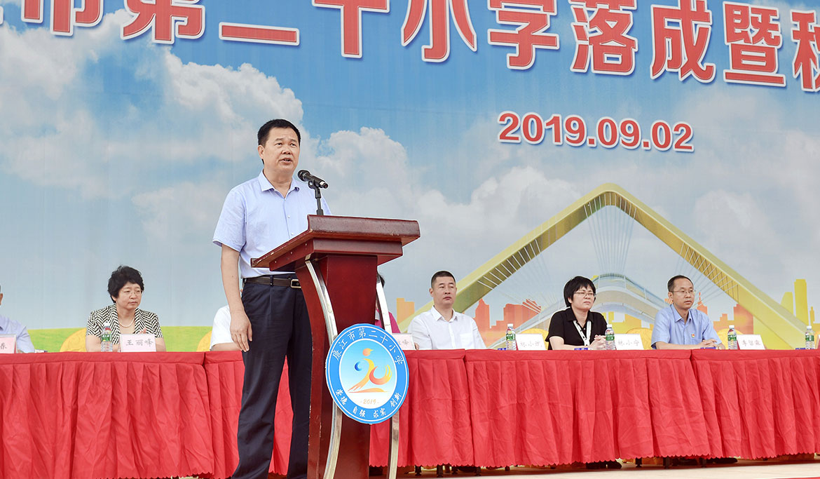 開學儀式由市委常委、黨組成員木聲隆主持,介紹完主要領導后,活動現場還進行了升國旗儀式,市委常委、常務副市長黎亦鴻,市教育局局長葉春,市第二十小學校長李廷春分別為二十小學開學致辭并祝賀學校落成。