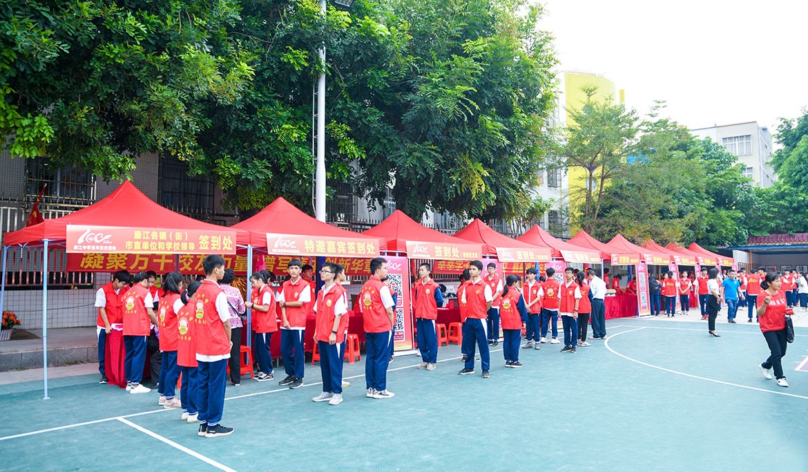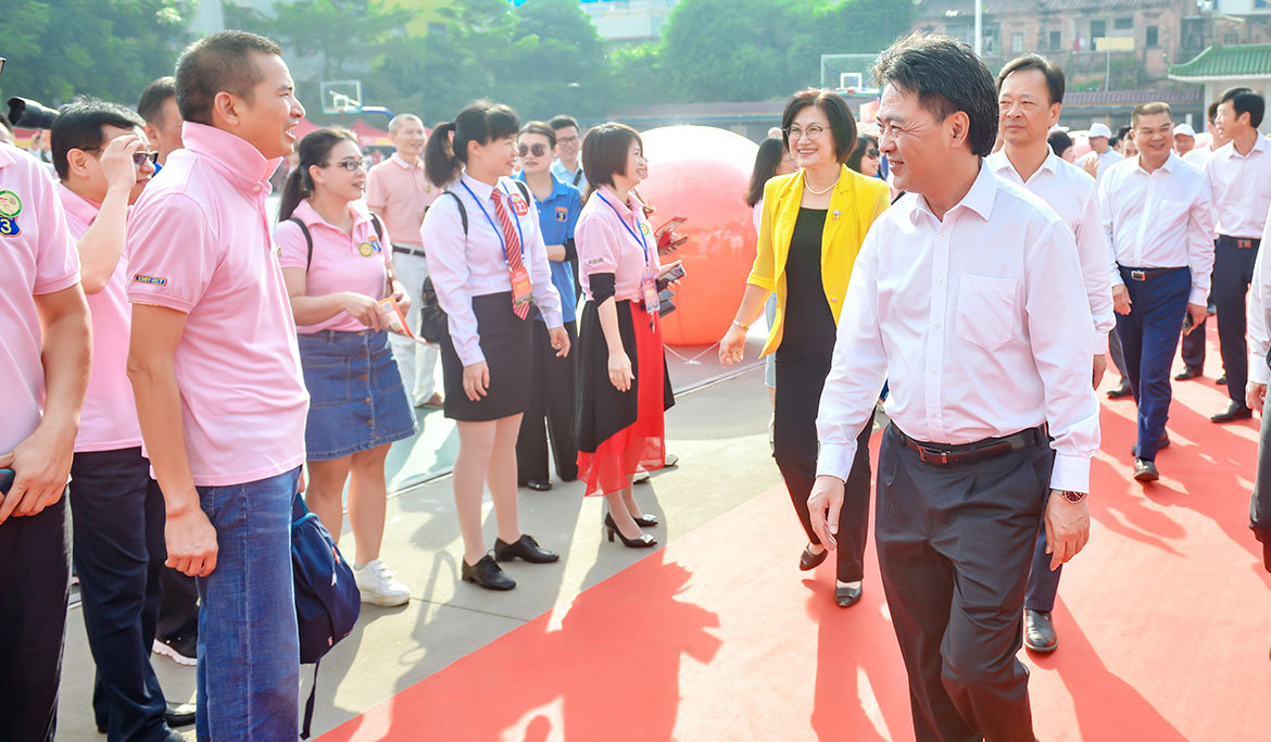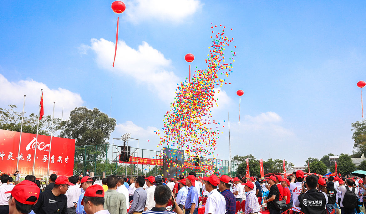 慶祝大會開始,省工業和信息化廳廳長涂高坤,湛江市副市長崔青,我市市委書記林海武,市委副書記、市長龐曉冬,市人大常委會黨組書記、主任李世東,市政協主席吳永光等市四套班子領導以及省內兄弟學校,市直相關單位、各鎮(街),市總商會、各地商會、協會、香港同鄉會的領導及各屆校友代表,社會各界熱心人士、離退休校長、老師代表、在校師生等近萬人參加盛會。