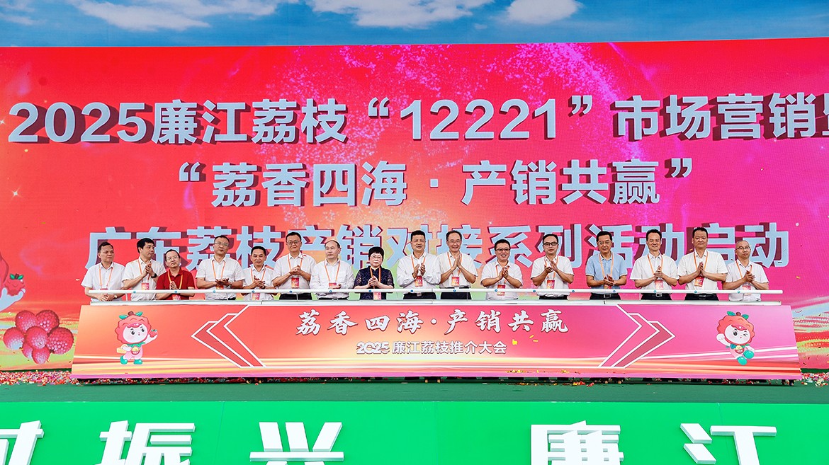 活動(dòng)由省農(nóng)業(yè)農(nóng)村廳、省商務(wù)廳指導(dǎo),廉江市政府、湛江市農(nóng)業(yè)農(nóng)村局、湛江市商務(wù)局聯(lián)合主辦。湛江市政協(xié)主席李多民,副市長(zhǎng)何嘉旻,廣東省商務(wù)廳一級(jí)巡視員殷煥明,嶺南師范學(xué)院黨委副書(shū)記、校長(zhǎng)陽(yáng)愛(ài)民,廣東省外語(yǔ)藝術(shù)職業(yè)學(xué)院黨委書(shū)記馬栩生,廣東省委網(wǎng)信辦二級(jí)巡視員于萬(wàn)東,廣東省統(tǒng)計(jì)局二級(jí)巡視員李兩聰,廣東省農(nóng)業(yè)農(nóng)村廳總農(nóng)藝師蔡立,湛江市委網(wǎng)信辦主任、市互聯(lián)網(wǎng)行業(yè)黨委書(shū)記汪良波,湛江市農(nóng)業(yè)農(nóng)村局局長(zhǎng)莫植貴,湛江市商務(wù)局局長(zhǎng)張佩,湛江市統(tǒng)計(jì)局局長(zhǎng)甘強(qiáng),湛江市供銷(xiāo)社主任葉文新,國(guó)家統(tǒng)計(jì)局湛江調(diào)查隊(duì)隊(duì)長(zhǎng)、一級(jí)調(diào)研員許喬峰,廉江市委書(shū)記曾平治,市委副書(shū)記、市長(zhǎng)柯俊,市人大常委會(huì)黨組書(shū)記、主任陳煒飛等領(lǐng)導(dǎo)出席活動(dòng),并共同推桿啟動(dòng)2025廉江荔枝“12221”市場(chǎng)營(yíng)銷(xiāo)暨“荔香四海·產(chǎn)銷(xiāo)共贏”廣東荔枝產(chǎn)銷(xiāo)對(duì)接系列活動(dòng)。