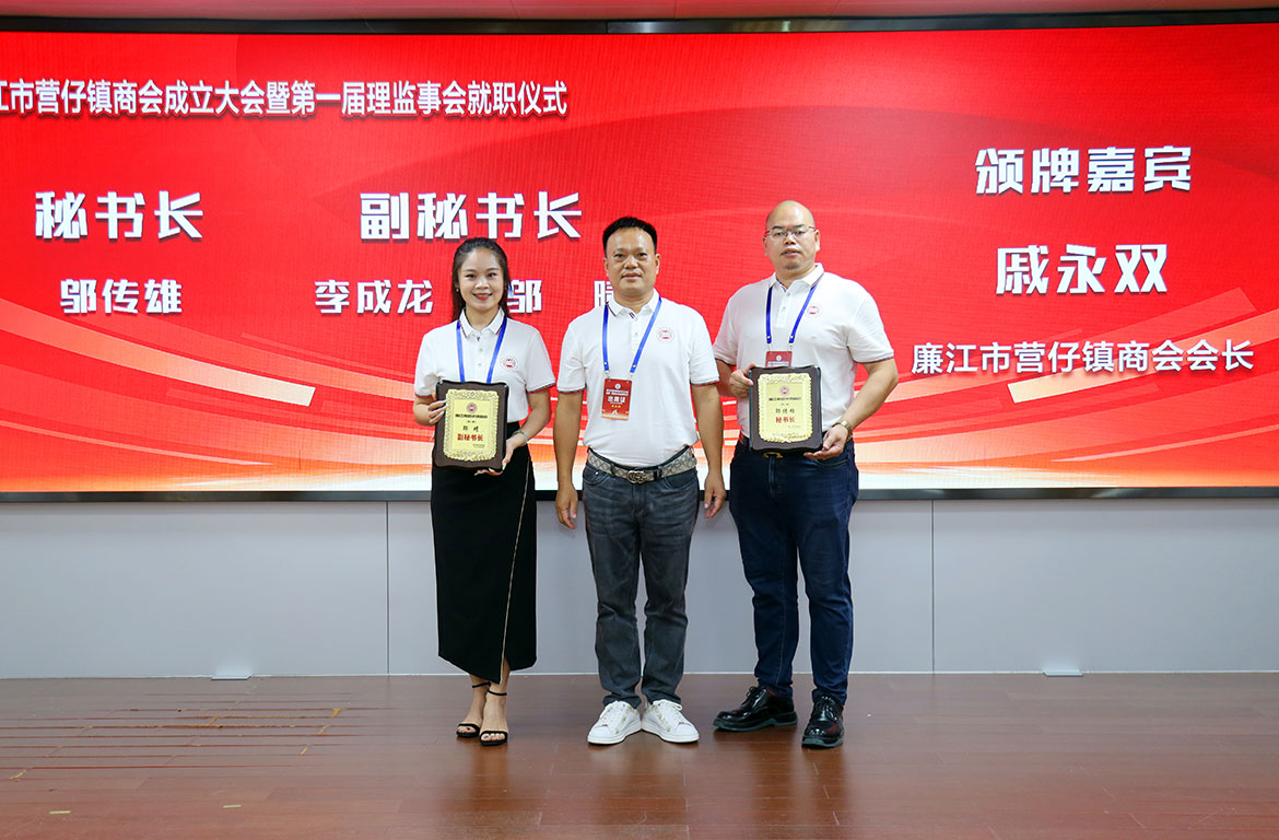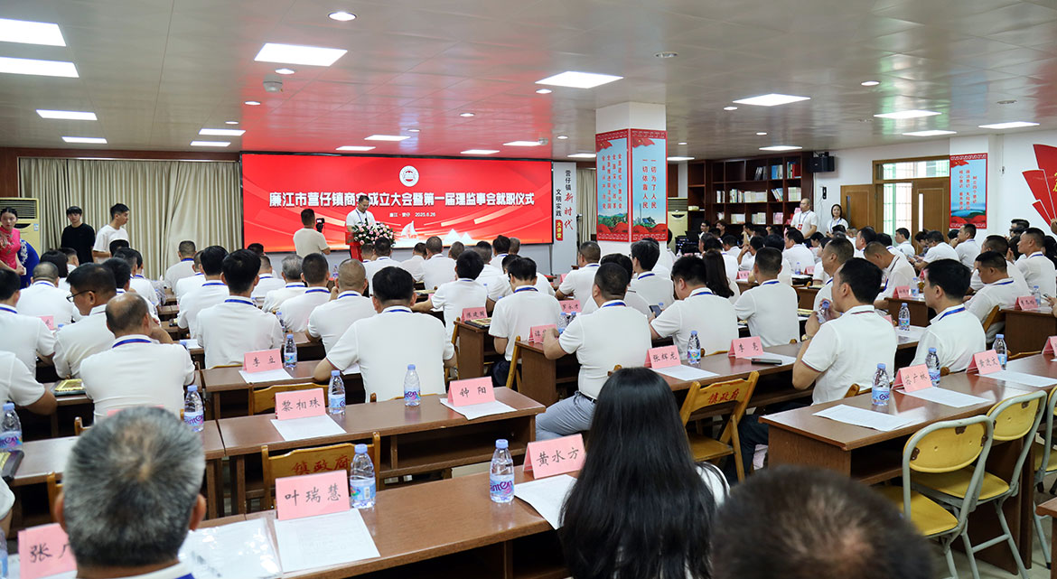 廉江市營仔鎮商會成立大會暨第一屆理監事會就職儀式舉行,各界嘉賓、商會會員齊聚一堂,共繪營仔鎮高質量發展新畫卷。