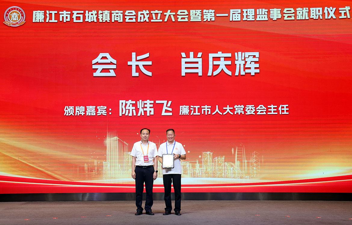 會上,陳煒飛對石城商會的成立致以衷心的祝賀,希望商會在高質量發展的旗幟下凝聚共識、聚沙成塔,引領廣大會員企業攜手并肩、砥礪前行,共同開創更為宏大而輝煌的事業格局;希望石城商會各會員企業立足廉江這片發展沃土,在助力“百千萬工程”等方面主動作為,展現新時代企業家的擔當與風采。