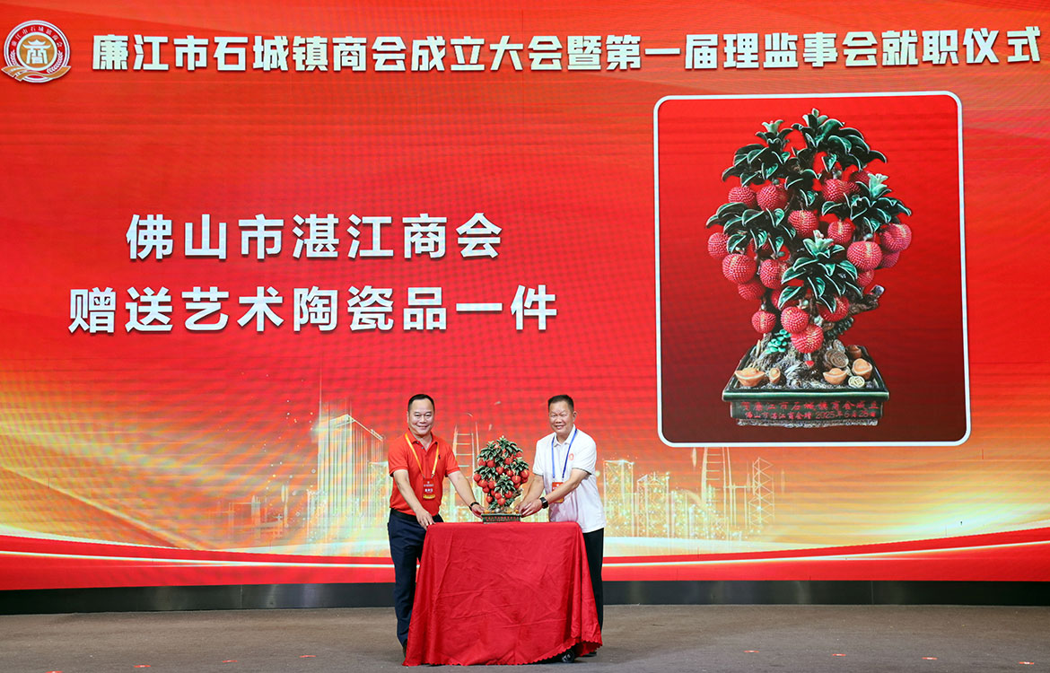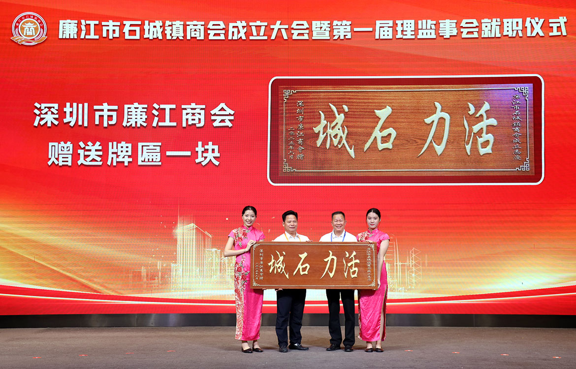 兄弟商會深圳市廉江商會、佛山市湛江商會、深圳市廉江石城商會、東莞廉江商會長安分會、廉江市羅州街道商會、廉江市城北街道商會、廉江市城南街道商會、廉江市吉水鎮商會、廉江市石頸鎮商會,為慶祝廉江市石城鎮商會成立分別贈送了紀念品。