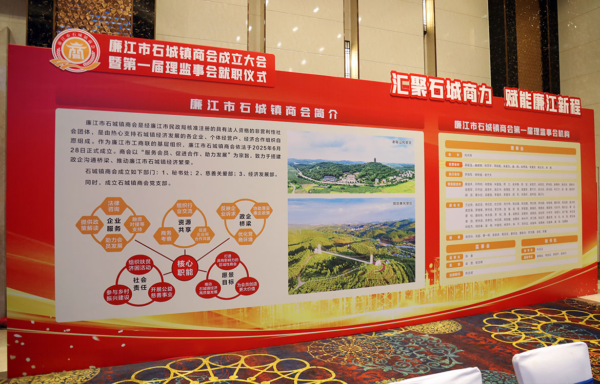 廉江市石城鎮商會舉行成立大會暨第一屆理監事會就職儀式,凝聚石城商界力量,共商助力“百千萬工程”高質量發展推進大計,助推石城鎮經濟邁向高質量發展新征程。